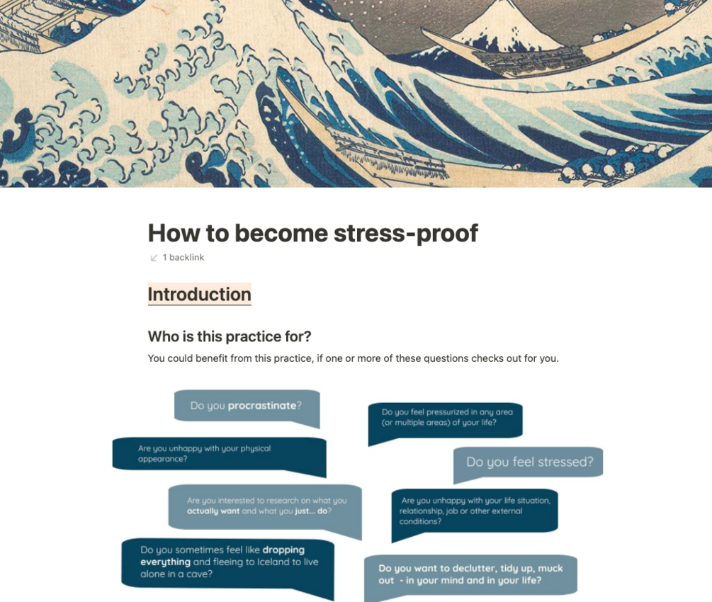 The Notion template allows you to type your notes directly into the worksheet. The practice can however just as well be done with pen and paper - in that case, the PDF will be fully sufficient.