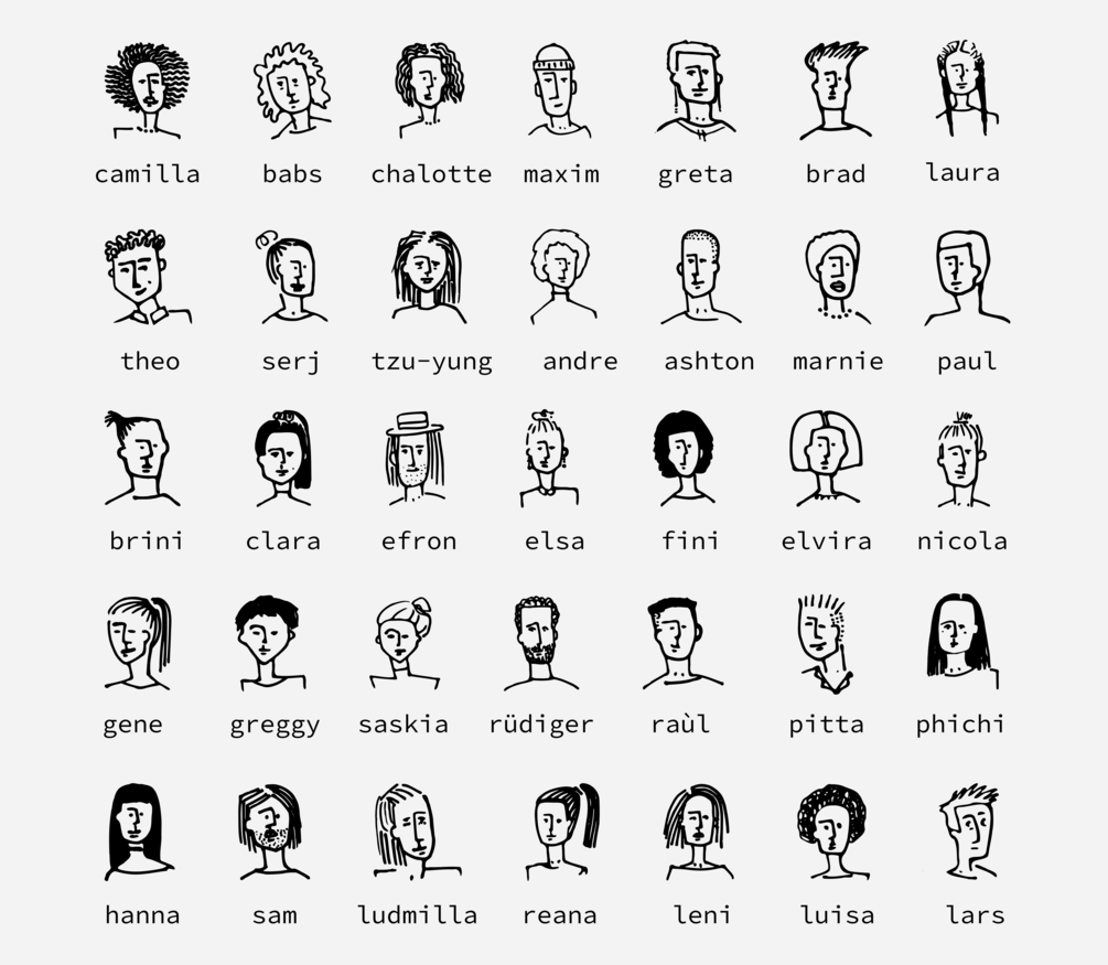 35 illustrations of faces as PNG, with transparent as well as white background