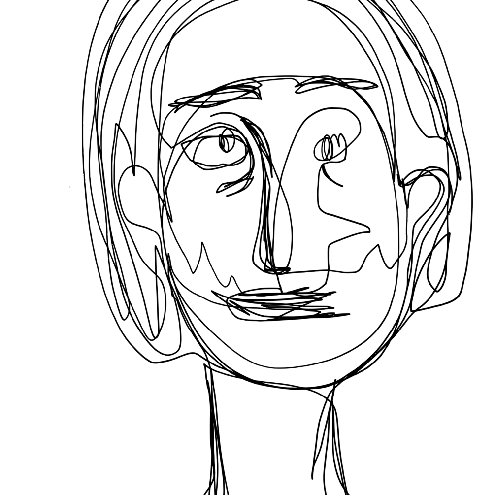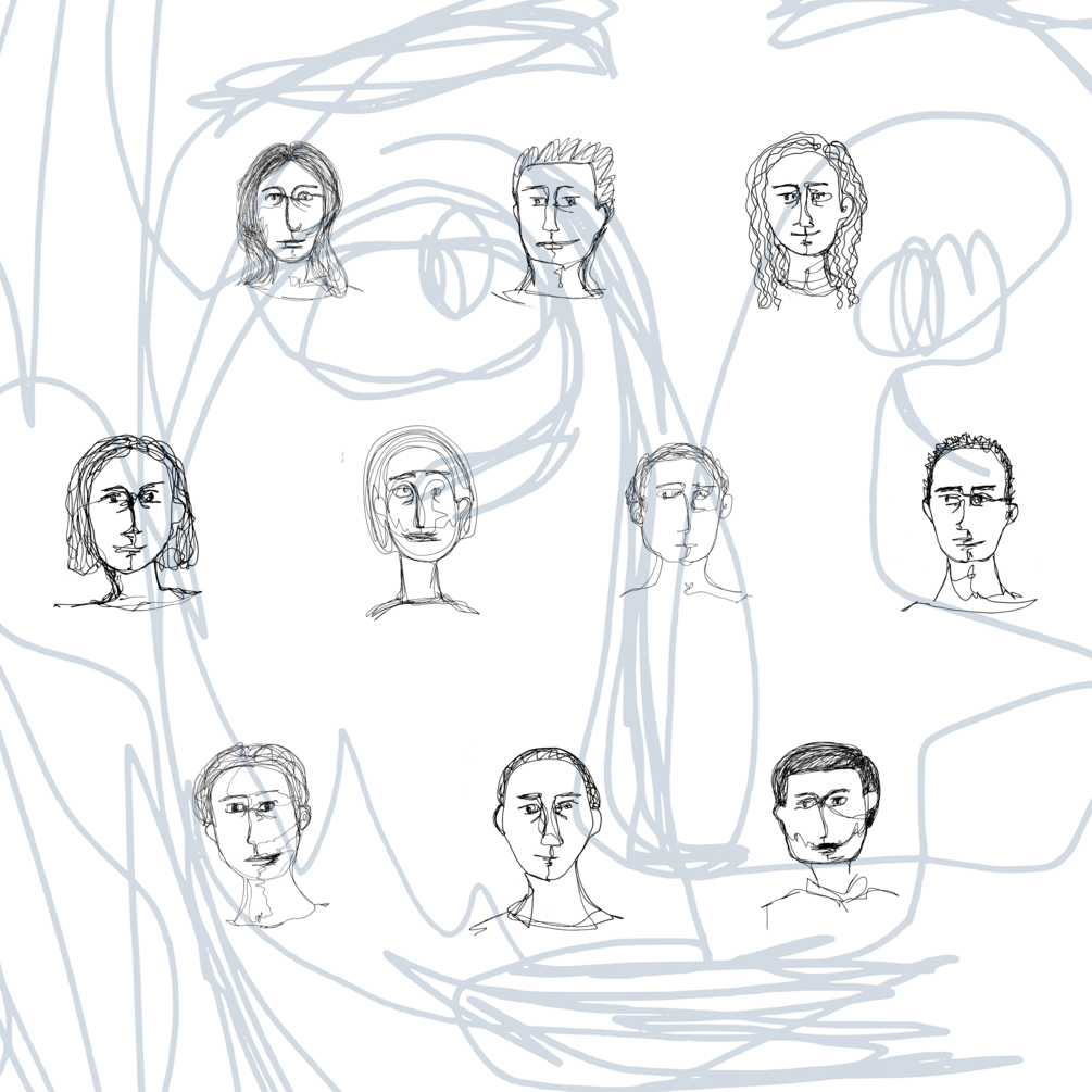 10 illustrations of faces as PNG, black lines on white background